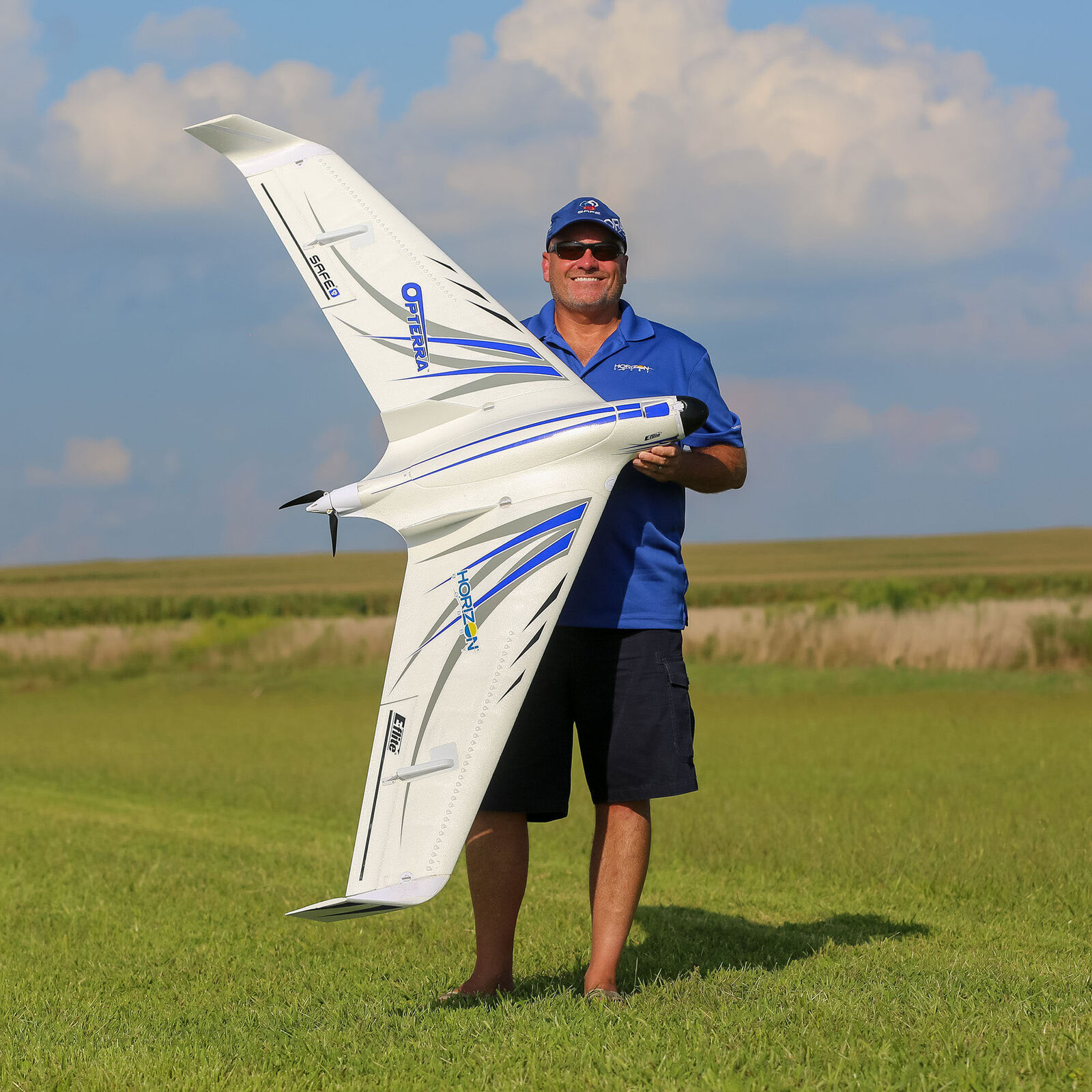 The Opterra™ 2m flying wing is the collaborative effort of George Hicks and Mike McConville - two of model aviation's premier aircraft designers. Together, they have created some of the best flying RC airplanes in the world. This one is no exception. Its lightweight construction, long wingspan and efficient aerodynamics give it a wide range of capabilities that includes everything from sport aerobatics to soaring. It even gives you the ability to put yourself in the pilot's seat with FPV gear while using a GoPro Hero 3, Hero 4 or similar class camera to record HD video at the same time.* This Bind-N-Fly® version comes with the added benefit of a Spektrum™ AS3X® receiver that features optional SAFE Select technology.