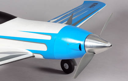 Factory-installed high-RPM brushless outrunner motor plus APC 10x8E prop and an aluminum spinner