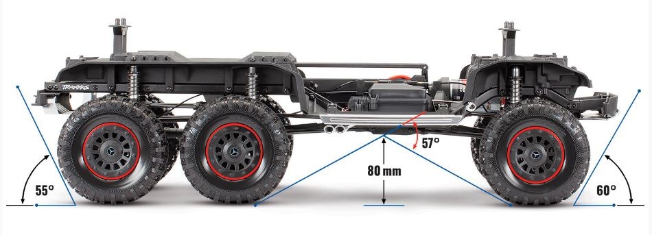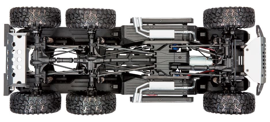 The Mercedes-Benz G 63 AMG 6x6 represents a singular vision to create the boldest and toughest all-terrain vehicle ever. Traxxas captures the spirit and no-compromise approach of the Mercedes-Benz G 63 AMG 6x6 with an officially licensed detailed scale replica built on the new TRX-6™ platform. Six drive wheels, three T-Lock™ remote-locking differentials, portal axles, high/low transmission, 6 aluminum long-travel shocks, and a stunningly accurate body with brilliant LED lighting make this the most advanced and capable RC crawler ever to hit the trail.