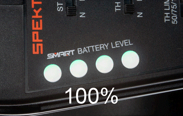 Install a Spektrum Smart LiPo battery and Smart Firma™ ESC in your model, and you can view vehicle battery capacity at a glance on the DX3 transmitter's convenient voltage level indicator.