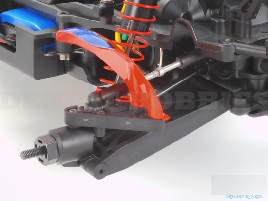 The TD2 chassis is based on the popular TD4 chassis. Just like the TD4 machine, it uses a front inboard suspension layout which offers an exceptionally slim, low-profile form. The front suspension arms have a skid angle of 25 degrees, for amazing ground-hugging and stable performance. The equipped CVA oil dampers allow smooth suspension movement. The battery pack is positioned transversely and positioned to the rear. Finishing off the chassis, a mid-mounted transverse motor layout with 3 gears connecting it to the drivetrain provide optimum balance and improved performance.