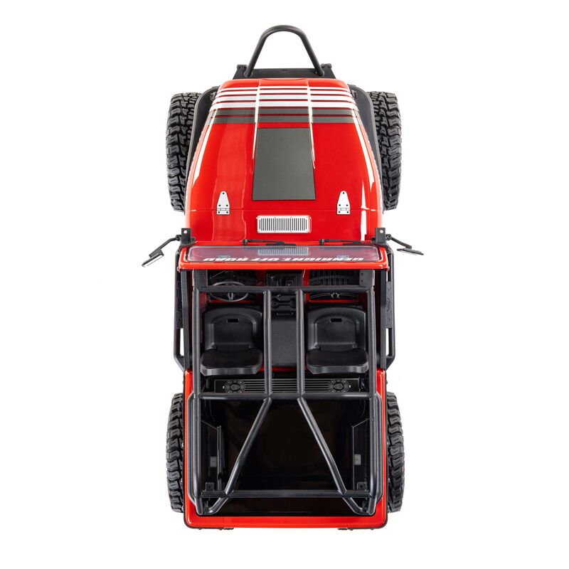 Made of durable polycarbonate, the officially licensed and factory-finished CJ-7 scale body comes richly detailed with officially licensed Gen-Right bumpers and body armor, a full injection-molded roll cage, plus a full interior including an opening center console. The doors can be opened or even removed.